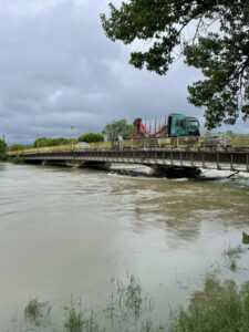 On je potvrdio da je upravo završena akcija uklanjanja granja koje je voda nanijela i koje su se zaustavile na bedemima ispod gradskog mosta.