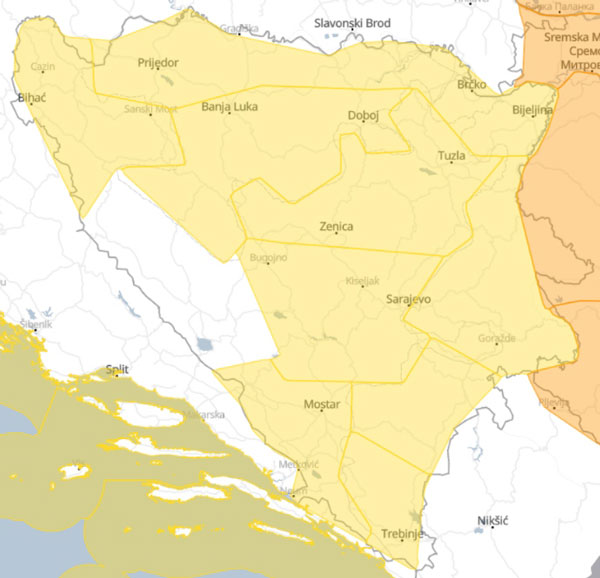 Hidrometeorološki zavodi izdali su žuti meteoalarm za područje Prijedora za ovaj četvrtak, 3. avgust 2023. godine.