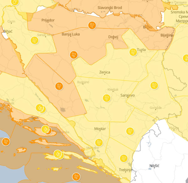 Hidrometeorološki zavodi izdali su narandžasti meteoalarm za područje Prijedora za ovaj utorak, 31. oktobar 2023. godine.