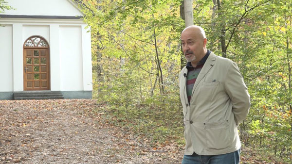 „Takav naočit, čovjek hedonističkog duha, zapao je za oko lokalnoj lјepotici Mariji, kćerki Karla Šmucera, vlasnika ove pilane. Ona se zalјubila u njega i iz te tajne lјubavi rodilo se dijete. Karakteristično za ono staro, konzervativno doba je da ta lјubav nije bila dopuštena, a pogotovo dijete iz takve veze. Marija je dijete rodila u tajnosti. Kasnije ga je ostavila pred Mutničku džamiju, prethodno ga zamotavši u novine na njemačkom jeziku, Nјemački cajtung, koji je čitalo par Kozarčana, a među prvima svakako njen otac Karl Šmucer. Iz tog razloga, istina se veoma brzo saznala, pukla je bruka u kući tada najuglednijih, najbogatijih Kozarčana. Karl Šmucer je odlučio da svoju kćer pošalјe kod rodbine u Austriju, a u isto vrijeme, da bi očistio grijehe pred Bogom, odlučio je da napravi ovu crkvicu“, priča on.