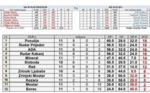 U posljednjem 11. kolu jesenjeg dijela prvenstva Kuglaški klub “Rudar” Prijedor zabilježio je novu pobjedu porazivši gostujuću ekipu “Kozare” iz Gradiške rezultatom 7:1, 3485-3265 oborenih čunjeva.