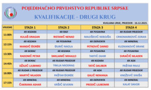 Ove subote 16. decembra od 11 časova na rasporedu je drugi krug kvalifikacija za finale Pojedinačnog prvenstva Republike Srpske.