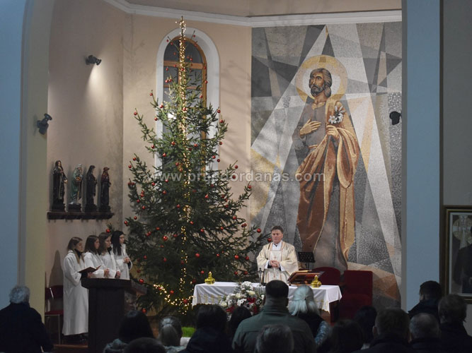 U prisustvu vjernika, misu ponoćku u crkvi Svetog Josipa u gradu na Sani služio je prijedorski župnik Marko Vidović.