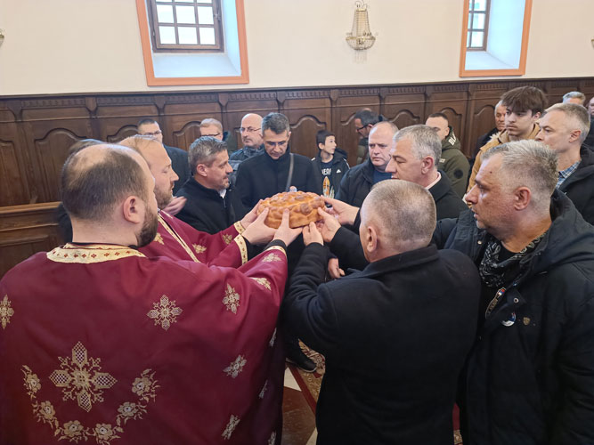 Potom je u Crkvi Svete Trojice osveštan i slavski kolač, jer je Bogojavljenje i krsna slava ove brigade.