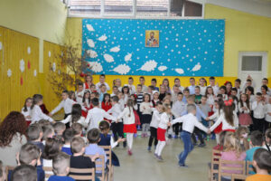 Mališani više starijih vaspitnih grupa izveli su prigodan program i pjesmom i igrom pokazali šta su od svojih vaspitača naučili o velikom srpskom svetitelju Svetom Savi.