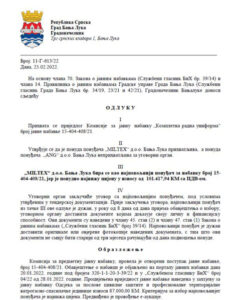 Na tender, kojim je ukupna vrijednost nabavke procijenjana na 55 555,55 kovertibilnih maraka (bez PDV-a), niko osim banjalučke kompanije se i nije odazvao, pa je ponuda neznatno niža od procijenjene vrijednosti bez zadrške prihvaćena.