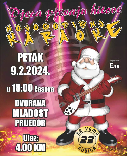 Sportska dvorana “Mladost” u Prijedoru biće ovog petka, 9. februara 2024. godine, od 18:00 časova domaćin već tradicionalne manifestacije „Djeca pjevaju hitove – Novogodišnje karaoke“.