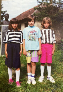 Iz Skupljena prelazimo u selo Knićanin kod Zrenjanina, u kuću drugog dedinog prijatelja, isto gastarbajtera. Malo poslije stariju sestru i mene ostavljaju kod strica i strine u Srpskom Miletiću. Ja nisam podnosila odvajanje od roditelja, to je moj najveći strah bio. Starija sestra je odlazila na raspuste kod bake i dede u Austriju. Ja sam jednom otišla i toliko sam plakala da su roditelji morali sjesti u auto i doći po mene. Ali kod tog strica i strine, brat je godinu mlađi od mene, a sestra godinu mlađa od moje starije sestre, meni je možda najljepših mjesec dana u životu do tada. Ljeto, kupanje, bazeni, raj. Naučila tad plivati. Probušila uši. Doživjela stvari koje djeca doživljavaju s porodicom. Ostali smo u kontaktu, ali mi se čini da im se nikad nismo dovoljno zahvalili.