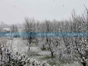 Tako smo dobili fotografiju iz sela nadomak Prijedora, gdje se vidi da je snijeg pokrio cijeli voćnjak.