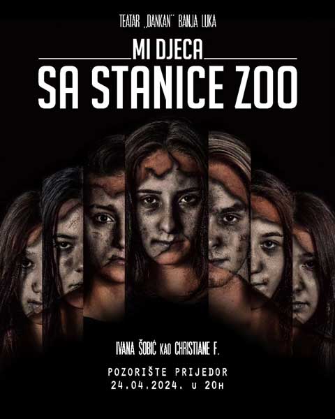 Djelo “Mi djeca sa stanice ZOO” bavi se problemom narkomanije i napisano je na osnovu ispovijesti Kristijane, djevojčice koja je već sa trinaest godina probala hašiš, a sa četrnaest je postala zavisna od heroina. Ujutro je išla u školu, a popodne je s prijateljima, koji su bili poput nje, zarađivala novac na stanici Zoo. Kristiane F. otvoreno i veoma precizno pripovijeda o sudbini djece. Za njih javnost saznaje tek kada ih droga ubije. Ova potresna Kristijanina ispovijest, koja je osamdesetih potresla njemačku javnost i koja do dana današnjeg nije izgubila na svojoj aktuelnosti, počinje pričom o Berlinu osamdesetih godina, u čijem sivilu jednostavno nema mjesta za dječiju igru, za okupljanje i druženje tinejdžera, već su oni prepušteni ulici. Usljed raznih životnih okolnosti koje nameće moderno društvo, dolazi do nebrige roditelja za djecu, koja svoj svijet traže na ulici, a sistem nije u mogućnosti da se suprotstavi prodaji i distribuciji droge. Jedinstveni spoj modernih plesnih stilova, koji u velikoj mjeri korespondira sa interesovanjima današnjih generacija mladih, približava ovo djelo onima koji žele da ovu najupečatljiviju priču o narkomaniji čuju na sopstvenom jeziku muzike i plesa, a u tumačenju generacijski bliskih igrača (sudenata i srednjoškolaca).