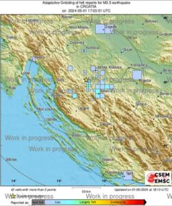 Intenzitet potresa u epicentru procijenjen je na V stepeni EMS ljestvice, piše Index.hr.