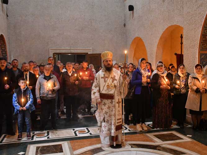NJegovo preosveštenstvo episkop bihaćko-petrovački Sergije služio je ponoćnu Vaskršnju liturgiju u Manastiru Klisini kod Prijedora.