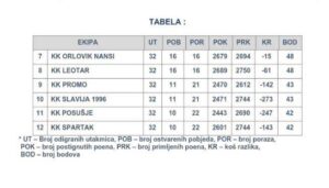Košarkaški savez Bosne i Hercegovine objavio je posljednji bilten Lige za opstanak, sa rezultatima utakmica 10. kola i zvaničnom tabelom nakon završenog takmičenja u ovoj grupi.