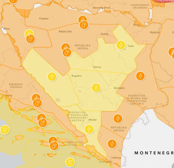 Poremećaj u snabdijevanju električnom energijom, vodom i u komunikacijama je moguć.