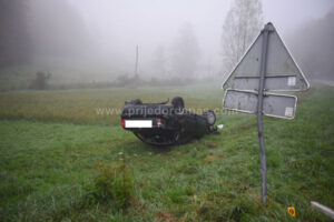 Kako saznajemo, automobil se kretao iz pravca Kozarske Dubice, te je sletio na livadu pored puta i prevrnuo se na krov.