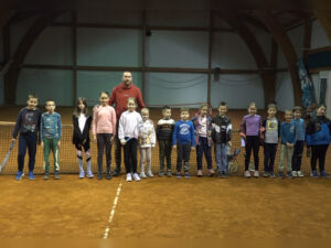 Uz pomoć trenera, druženje i igru uče osnovnim vještinama tenisa.