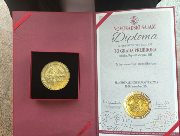 Turistička organizacija grada Prijedora dobitnik je Diplome sa velikom zlatnom medaljom za doprinos razvoju i promociji turizma.