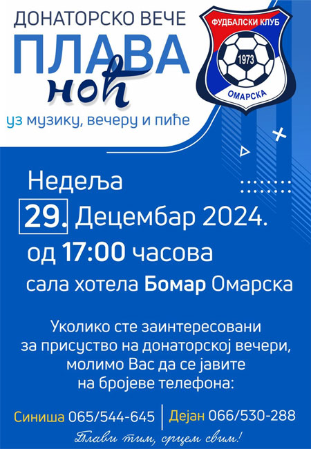 FK Omarska organizuje donatorsko veče na kojoj će se okupiti naši generalni sponzori, sponzori i donatori, prijatelji i simpatizeri kluba.