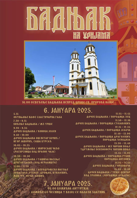 16.00 – Osvećenje badnjaka ispred Crkve Svetog proroka Ilije