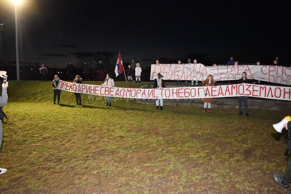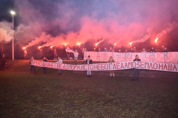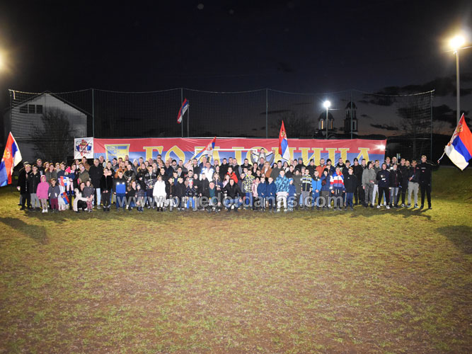 Prijedor: Mještani Gomjenice bakljadom i vatrometom obilježili Božić i rođendan Republike Srpske – FOTO/VIDEO admin January 8, 2025 Prijedor: Mještani Gomjenice bakljadom i vatrometom obilježili Božić i rođendan Republike Srpske – FOTO/VIDEO2025-01-08T21:28:05+01:00 Društvo, Foto dana, Video dana Likes 0Rating 12345Mještani prijedorskog naselja Gomjenica večeras su, drugu godinu zaredom, obilježili najradosniji hrišćanski praznik Božić i predstojeći Dan Republike Srpske. Tim povodom na platou i igralištu kod društvenog doma okupio se veliki broj stanovnika ovog naselja svih uzrasta. -Nakon akcije obilježavanja Božića i rođendana Republike Srpske koju smo uspješno upriličili prošle godine, riješili smo da nam to postane tradicija. U organizaciju smo ovoga puta krenuli ranije i drago mi je da su se mnogi odazvali. Priredili smo bakljadu i vatromet nakon čega je uslijedilo i druženje uz kuvano vino, rakiju, sokove i kolače. Jedino smo naselje u Prijedoru koje na ovaj način obilježava Božić i rođendan Republike Srpske i na tu činjenicu smo svi veoma ponosni. Siguran sam da će se ova tradicija nastaviti i u narednim godinama jer i na ovaj način pokazujemo koliko nam znači Božić i dan Republike Srpske – rekao nam je mještanin Gomjenice koji je bio jedan od inicijatora ovog okupljanja. https://www.prijedordanas.com/wp-content/uploads/2025/01/gomjenica-8januar-iz-vazduha.mp4 “Preko Drine sve do mora isto nebo gledamo, zemljo naša sveta, nikome te ne damo! RS 33!” i “Gomjenica – stara srpska tvorevina, Republika Srpska – ponosna naša svetkovina! 33!” – pisalo je na transparentima koji su uz zastave Republike Srpske istakli mještani Gomjenice. Tekst i foto – www.prijedordanas.com