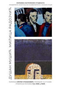 U Galeriji “Sreten Stojanović” Prijedor u petak, 14. februara 2025. godine, biće otvorena izložba dvoje nagrađenih studenata Akademije umjetnosti Univerziteta u Banjoj Luci.