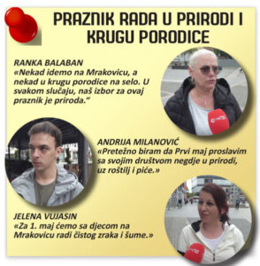 “Obično prvomajske praznike proslavlјam u okolini Prijedora. Tu je Kozara, tako da je to naš najčešći odabir za izlet kako bismo se družili u prirodi”, rekao je Prijedorčanin Mladen Malić.