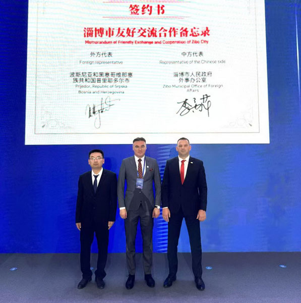 Delegacija grada Prijedora, koja boravi u Narodnoj Republici Kini u okviru prestižne međunarodne konferencije “Nedjelja saradnje i razmjene prijateljskih gradova provincije Šandong 2025” danas je zvanično potpisala sporazum o saradnji s gradom Zibo, jednim od vodećih urbanih centara u ovoj provinciji.