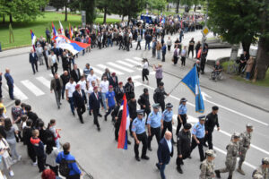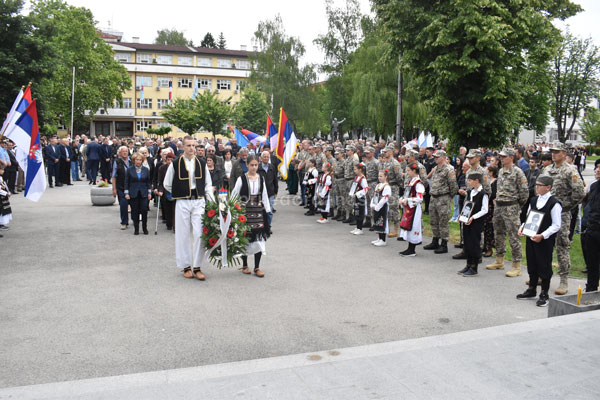 Prethodili su služenje parastosa u Crkvi Svete Trojice i polaganje vijenaca i prisluženje svijeća u zgradi PU Prijedor i na spomenike “Za krst časni” i “Kameni cvijet”, a uslijedio je defile ulicama grada koji je okupio nekoliko stotina građana.