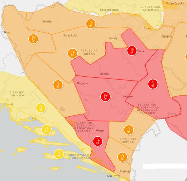 Budite spremni na visoke temperature koje će dovesti do zdravstvenih rizika među ugroženim osobama, na primjer starije i vrlo mlade osobe.