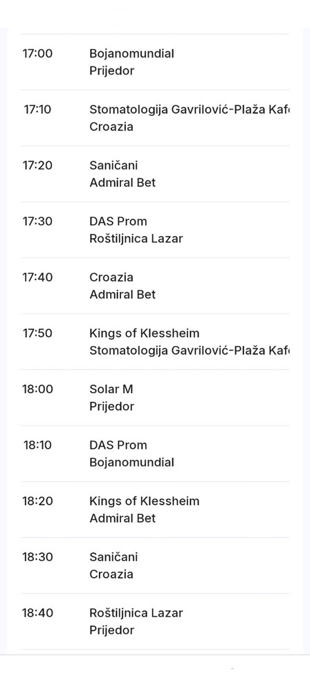 Grupa A: Admiral bet, Croazia, Stomatologija Gavrilović-Kafe Plaža, Kings of Klessheim, Saničani