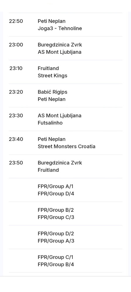 Grupa C: Street Kings, Futsalino – Miles dizala, AS Mont Ljubljana, Fruitland, Buregdžinica Zvrk