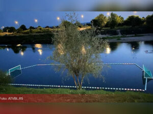 Ispred jednog lokala na obali rijeke Sane u Prijedoru napravljen je vaterpolo teren.