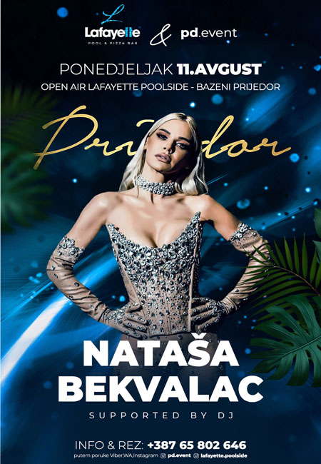 Koncert Nataše Bekvalac obećava novi spektakl za sve prisutne, ovoga puta u ugodnom ambijentu Lafayette poolside bazena pod zvjezdanim nebom!