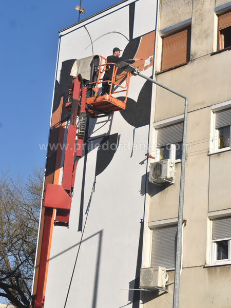 Njegovo oslikavanje počelo je na fasadi zgrade preko puta parka kod Bereka, u ulici Kralja Petra I Oslobodioca 12.
