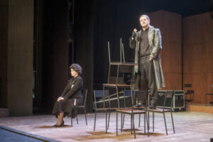 Dok se u romanu takva vrsta odmaka postiže autorovom posebnom vrstom pripovijedanja te brižljivo odabranim motivima oko kojih plete mrežu situacija, u našoj se predstavi taj isti dojam ostvaruje drugim sredstvima.