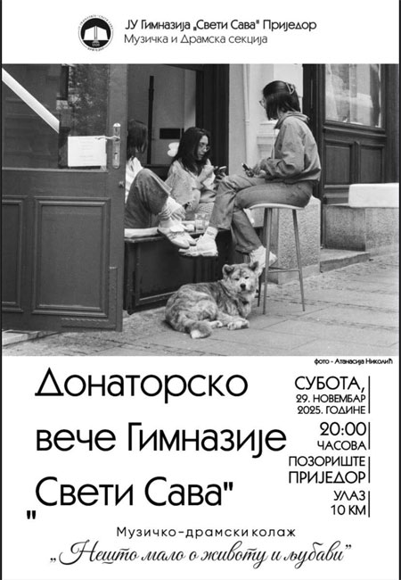 -Pozivamo vas da svojim prisustvom podržite naše zalaganje, humanu namjeru i užitak te da uživate sa nama u našem kolažu. Muzička i Dramska sekcija Gimnazije pripremile su muzičko-dramski kolaž pod nazivom “Nešto malo o životu i ljubavi” kojim će se predstaviti 29.11.2025. u 20.00 časova u Pozorištu Prijedor. Sredstva koja prikupimo kroz ulaznice usmjeravamo na izgradnju bine u školskom dvorištu i nabavku ozvučenja za realizaciju školskih manifestacija i predstava – navode iz Gimnazije “Sveti Sava”.