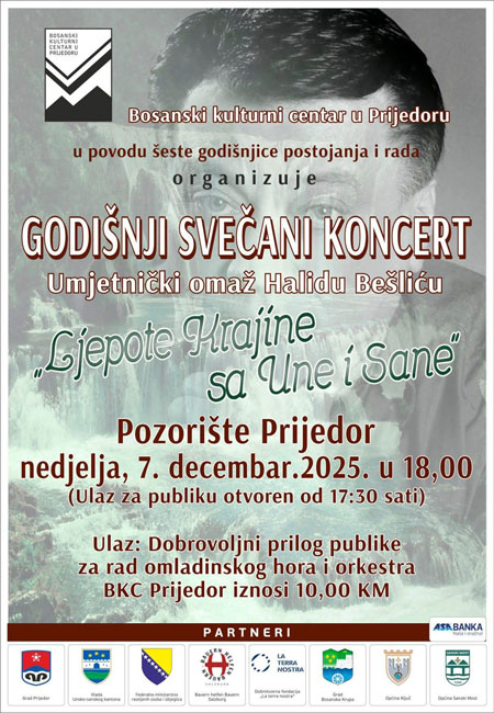 Bosanski kulturni centar u Prijedoru u povodu obilježavanja šeste godišnjice svog rada organizuje Godišnji svečani koncert „Ljepote