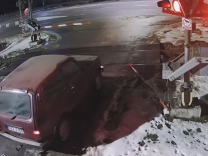 Na video-snimku koji su objavile Željeznice RS vidi se kako vozač automobila dolazi do pružnog prelaza, udara u spuštenu rampu i potom prelazi preko pruge, dok je svega nekoliko sekundi kasnije tim dijelom prošao voz.