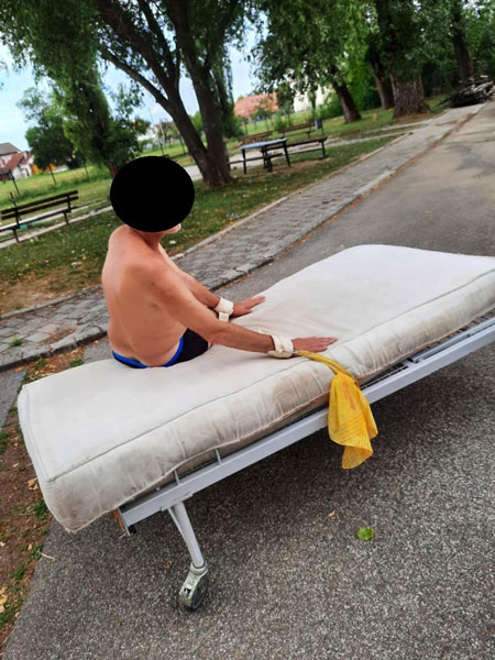 Prema tvrdnjama naših izvora, osoblje ga je vezivalo i izbacivalo van objekta kao vid kazne. Na fotografiji koja je u posjedu Raporta vidi se taj štićenik zavezan za krevet, vani, na livadi dok su na fotografiji još trojica muškaraca među kojima je navodno i uposlenik koji je u međuvremenu napustio Dom, a bio je poznat po zlostavljanju štićenika.