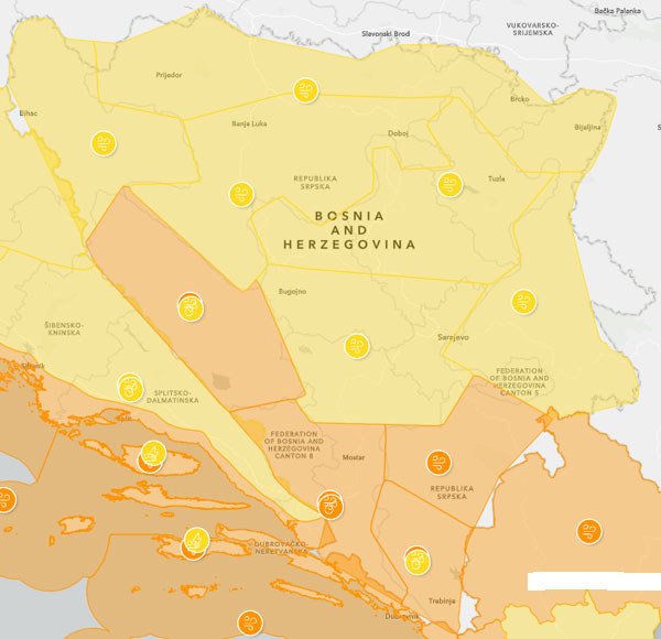 Hidrometeorološki zavodi izdali su žuti meteoalarm za područje Prijedora za ovu srijedu, 4. februar 2026. godine.