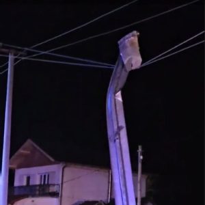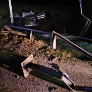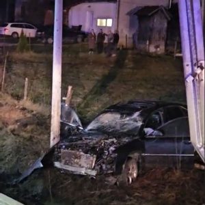 Od siline udara, dio ograde je odletio u vazduh nekoliko metara i ostao da visi sa strujnih žica između dva stuba.