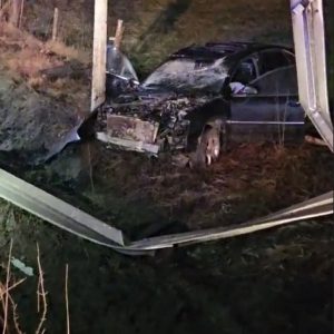 Kako saznajemo, “Audi” je sletio sa kolovoza i probio zaštitnu ogradu pored puta.