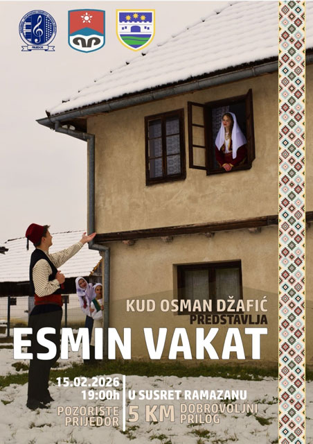 Program pod nazivom “Esmin vakat” biće održan u Pozorištu Prijedor u nedjelju, 15. februara 2026. godine, sa početkom u 19 časova.