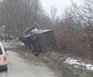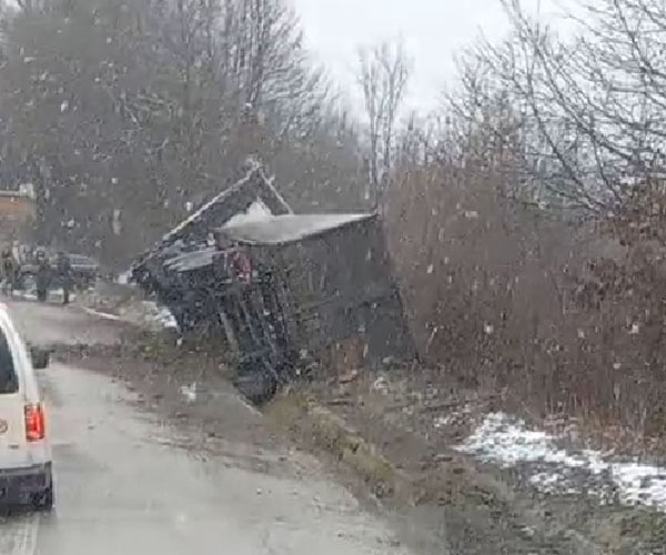 Teretno vozilo je sletjelo u jarak kraj ceste.