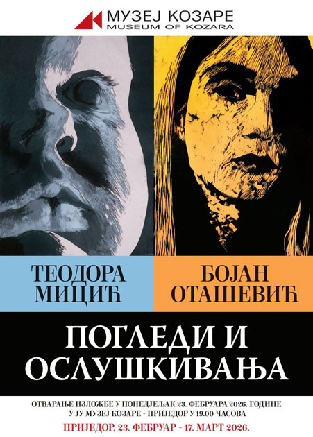 U Muzeju Kozare večeras će biti otvorena izložba “Pogledi i osluškivanja” čiji su autori Teodora Micić i Bojan Otašević.