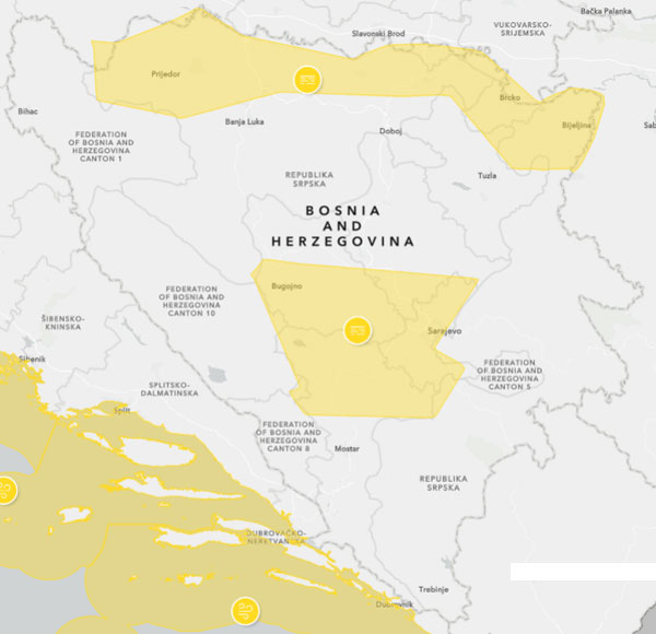 Hidrometeorološki zavodi izdali su žuti meteoalarm za područje Prijedora za ovu srijedu, 25. februar 2026. godine.