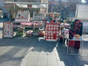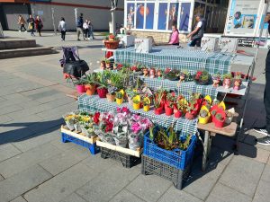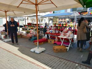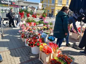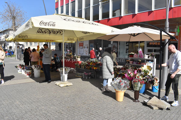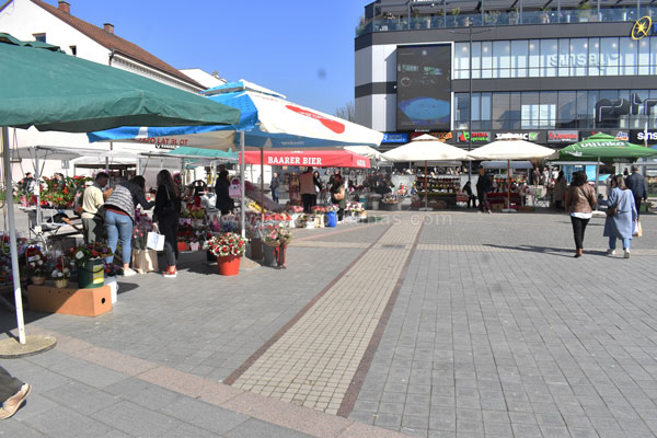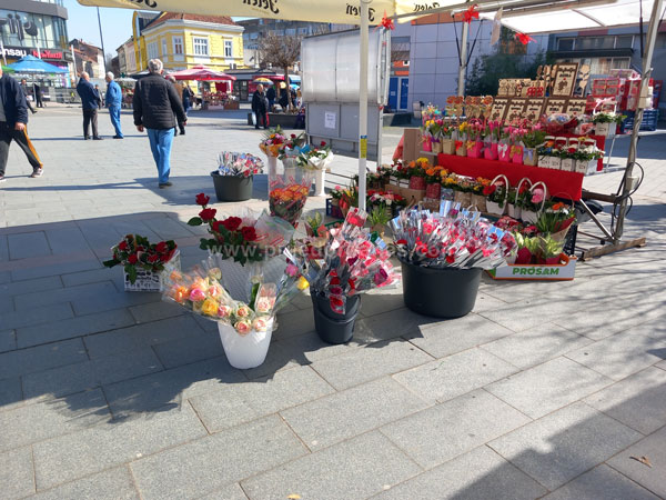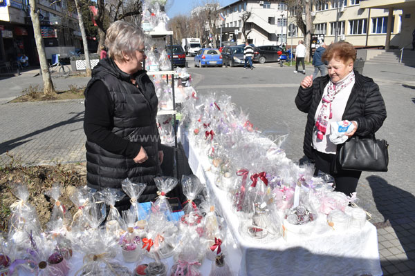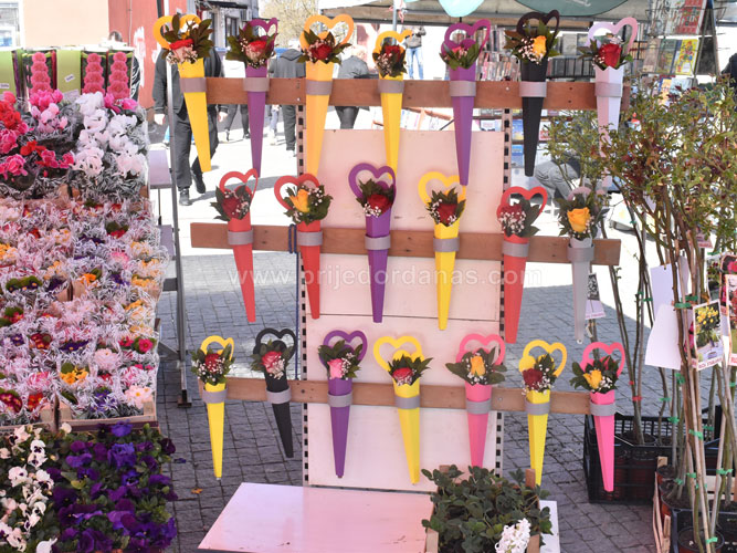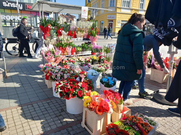 Poglede prolaznika na Trgu majora Zorana Karlice ovih dana mame šareni štandovi, na kojima se mogu pronaći prigodni pokloni za predstojeći Međunarodni dan žena.