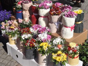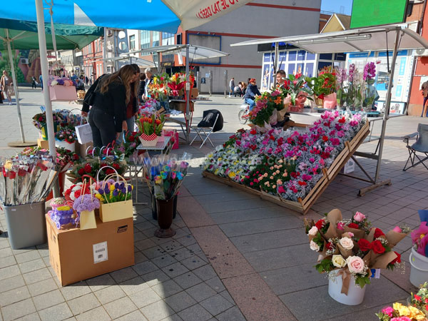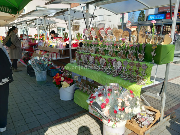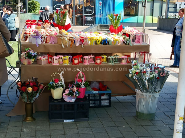 Osim klasičnih buketa i pojedinačnih karanfila i ruža, tu su i različiti cvjetni aranžmani, ukrasi ručne izrade, ali i praktični darovi poput kutlača i sudnih krpa.