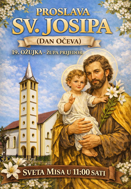 U četvrtak, 19. marta 2026. godine, u Prijedoru će biti obilježen zaštitnik (patron) Župe Sveti Josip.