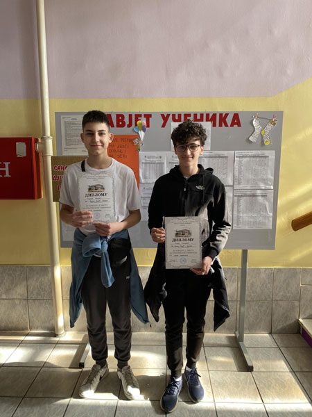 Učenik devetog razreda Andrija Kokanović osvojio je prvo, a Andrija Mandić treće mjesto.